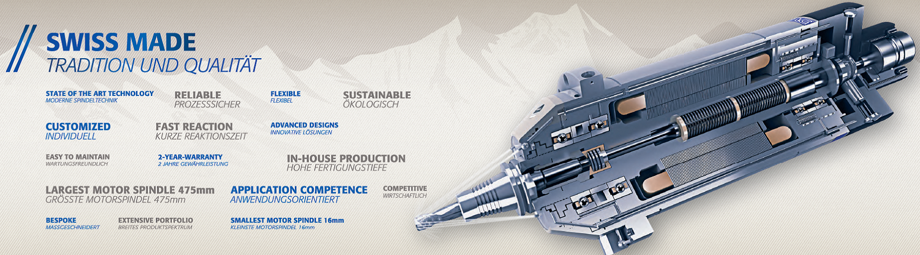 瑞士IBAG電主軸公司 成立于1941年2月,并于1960年開始研發(fā)電主軸。到目前,瑞士IBAG電主軸已成為業(yè)界影響深遠(yuǎn)、廣為推崇的電主軸品牌。作為最早進(jìn)入中國(guó)市場(chǎng)的電主軸品牌,憑借優(yōu)良的品質(zhì)、優(yōu)美的外觀,簡(jiǎn)潔可靠的結(jié)構(gòu)設(shè)計(jì),IBAG電主軸不僅為中國(guó)高端制造提供了高端電主軸選擇,同時(shí)也為國(guó)內(nèi)電主軸生產(chǎn)企業(yè)起到了模范作用,促進(jìn)了國(guó)內(nèi)電主軸行業(yè)最初的發(fā)展。瑞士IBAG電主軸公司多年僅聚焦于電主軸的研發(fā)和生產(chǎn),電主軸產(chǎn)品應(yīng)用領(lǐng)域廣泛,如微孔加工、精密雕刻、鏡面加工、鉆攻、各式加工中心、雙軸擺頭等,瑞士IBAG電...